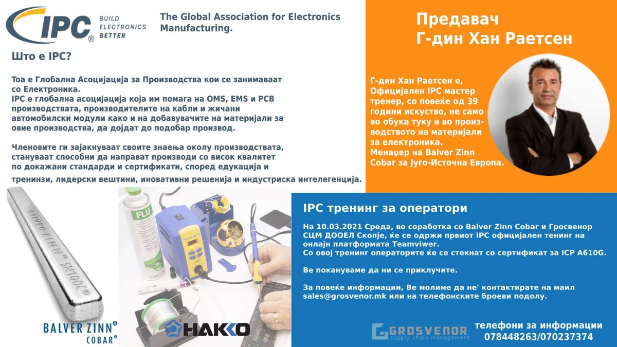 За прв пат во Македонија, Гросвенор СЦМ ДООЕЛ Скопје во соработка со Balver Zinn Cobar од Германија ќе ја направат првата онлајн обука за IPC CIS A610-G стандард.